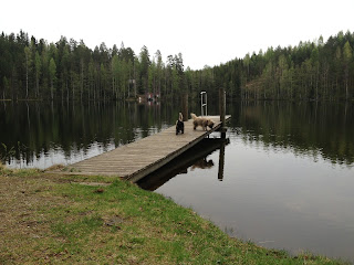 Tässä vielä kuvia reissusta, puhelinlaatua. Ihmisväki virittää viimeistä kisakatsomoa, mutta karvakorvat nukkuvat (Sohvi matkalaukussa, jonne kiipesi ennen kuin ehdin sen purkaa).